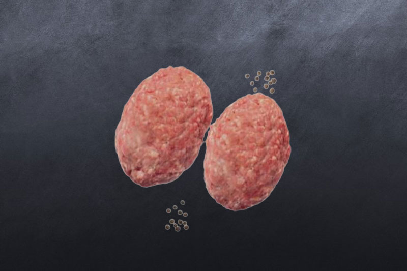 Склад: філе курчати-бройлера 40,4%, м’ясо стегна без шкіри курчати-бройлера 36,6%, шкіра курчати-бройлера, вода, пшенична клітковина, молочний протеїн, яловичий протеїн, сіль кухонна 0,7%, перець чорний молотий 0,05%. Збудьте про підготовку спецтехніки – вам не знадобиться збирати, а потім мити м’ясорубку! Ідеальні котлети для бургера ми вже зробили – куряче м’ясо перець та трішки солі. Зручно? Так! Ефективно? 100%
