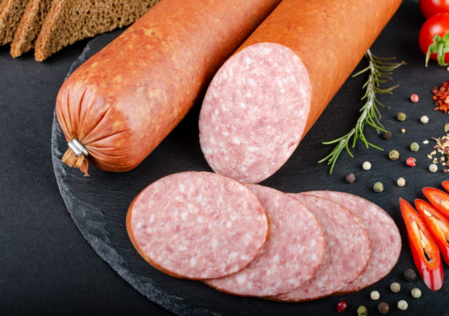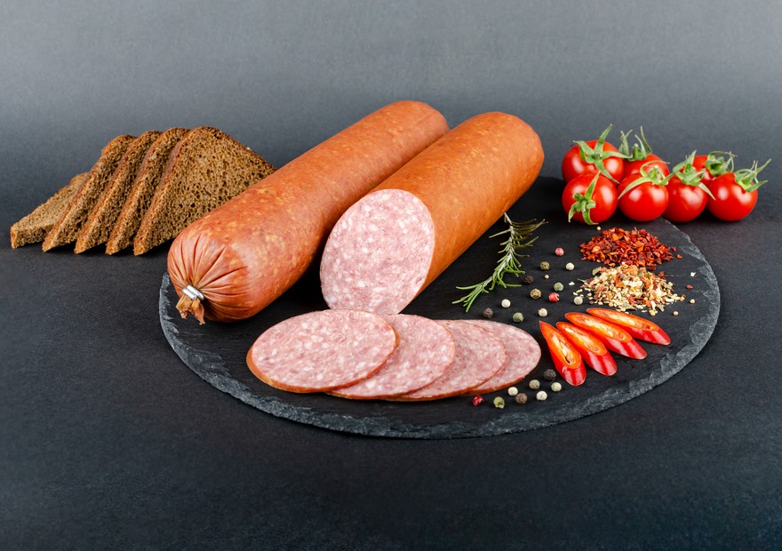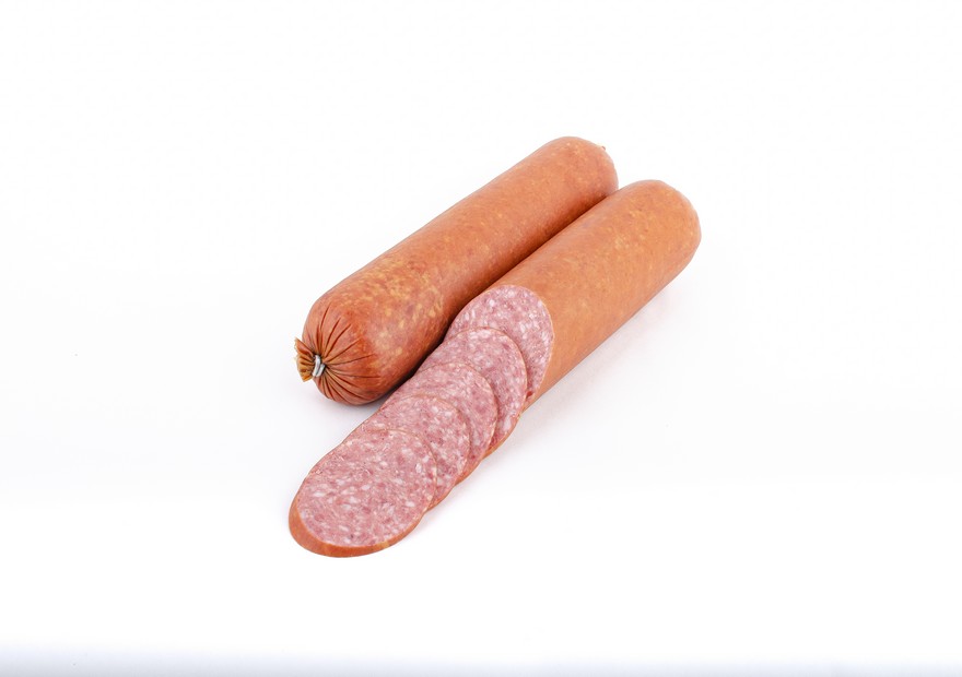 Склад: М’ясо яловиче – 65%, сало свиняче хребтове – 35%, суміш спецій та прянощів