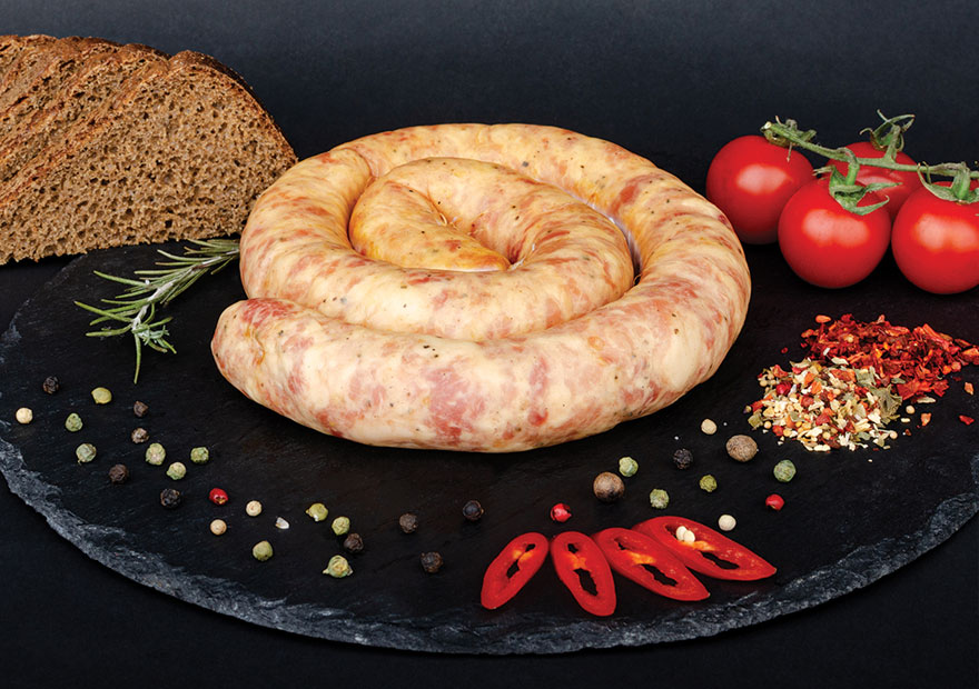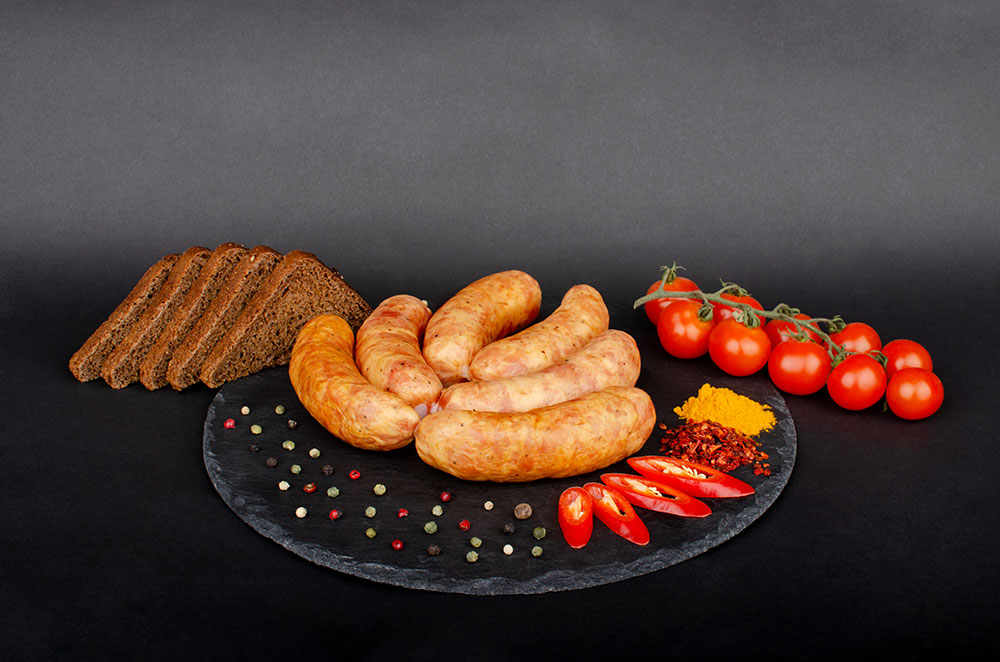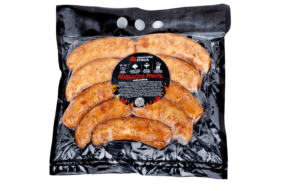 Склад М`ясо свиняче, вода, сіль кухонна, суміш прянощів, цукор, оболонка натуральна (черева) згідно з ДСТУ 4285.