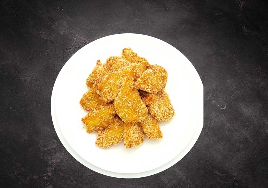 Нагетси – склад: філе курчати-бройлера (72,89%), вода питна, сухарі панірувальні 8,75% (борошно пшеничне, крохмаль картопляний, борошно соєве, цукор кристалічний, сіль кухонна, барвники: бета-каротин синтетичний, куркумін; олія соняшникова рафінована, регулятори кислотності: молочна кислота, оцтова кислота), модифікований пшеничний крохмаль, пшенична клейковина, яєчний порошкоподібний альбумін, суха молочна сиворотка, розпушувачі: пірофосфат натрію, карбонат натрію, екстракт куркуми), решулятор кислотності цитрат натрію, загущувачі: ксантова камідь, карагінан, камідь ріжкового дерева.