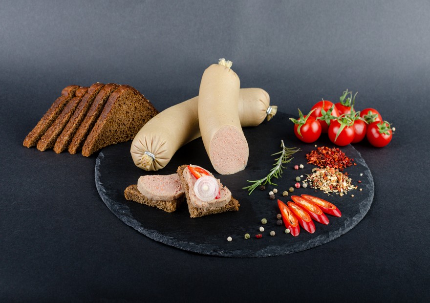 Склад м’ясо свиняче напівжирне – 50%, м’ясо свиняче з голів – 20%, печінка свиняча – 30%, суміш спецій та прянощів