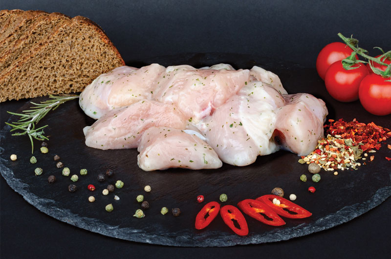 Склад Філе куряче 90%. Маринад 10%: сіль, знежирений молочний йогурт, цукор, суміш прянощів, сметана, вода,