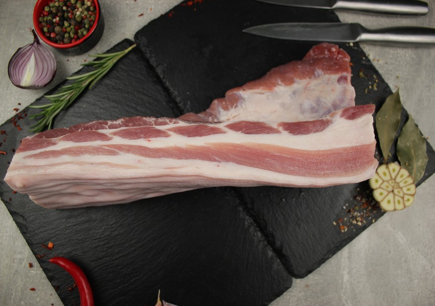 Шпондер або підчеревина — один із найцінніших відрубів у свинячій туші. У цій частині чергуються ніжні прошарки внутрішньом’язового жиру та тонкі м’язові волокна із вираженим насичено червоним кольором та густим ароматом. Така текстура дозволяє при смаженні, запіканні, копченні отримати соковитий м’ясний делікатес із ніжним смаком.